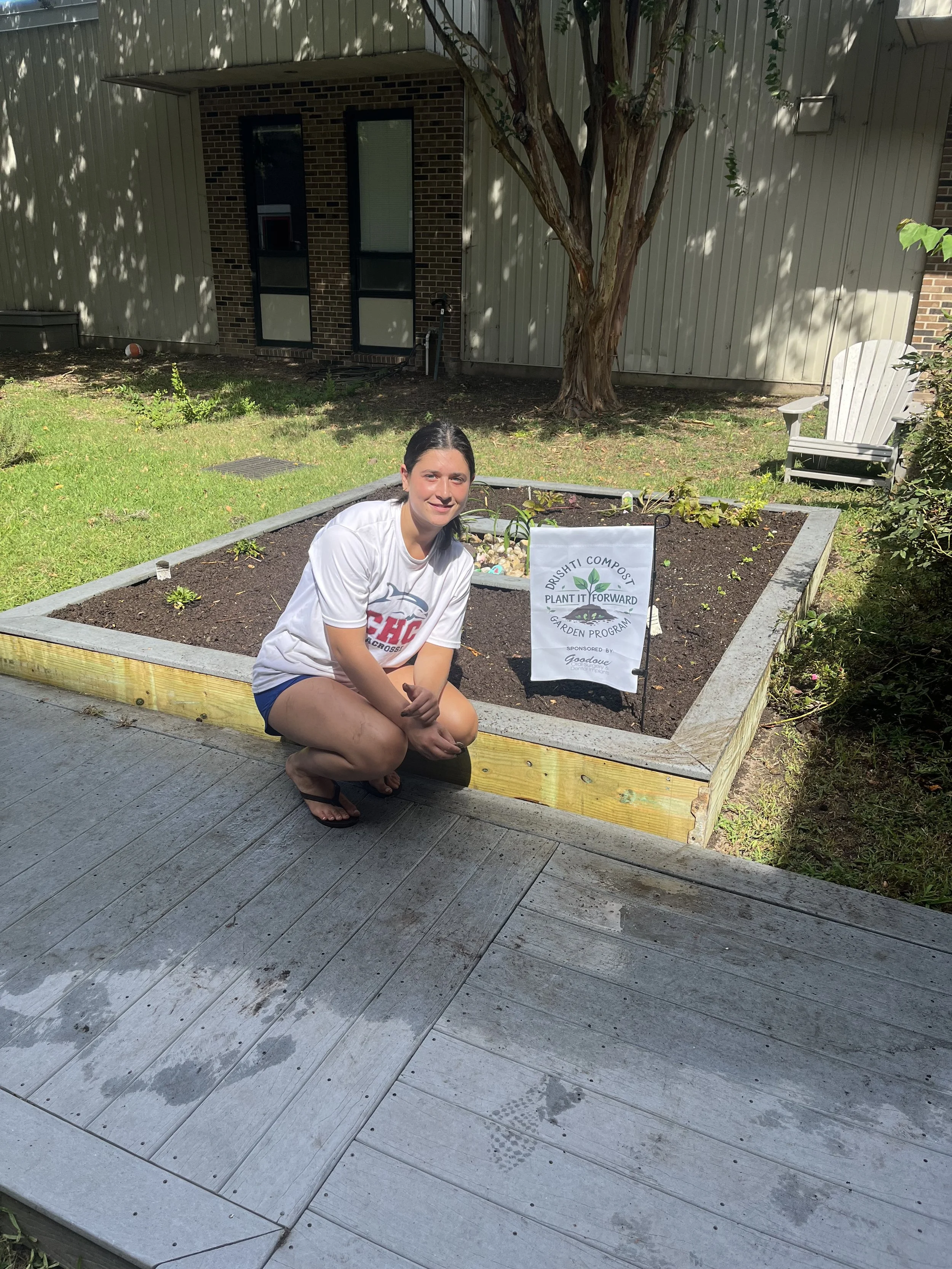 Reese is a senior at Ocean Lakes High School’s Math and Science Academy and the Virginia Beach Environmental Studies program. As a Drishti intern, she plays a vital role in assisting with field trips and volunteer days on the farm. Passionate about sustainability, Reese helps educate the community on the importance of composting and reducing food waste, inspiring others to take action.